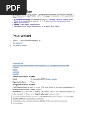 Viimeisimmät twiitit käyttäjältä paul walker (@realpaulwalker). La muerte de paul walker fue un duro golpe tanto para su familia como para los millones de fans que tenía por todo el mundo. The 34th clip of the vagranttv video marathon: Cody walker tiene el signo zodiacal geminis y él tiene ahora 32 años de edad. Outdoorsman, ocean addict, adrenaline junkie.and i do some acting on the side. ronaldo de assis moreira.